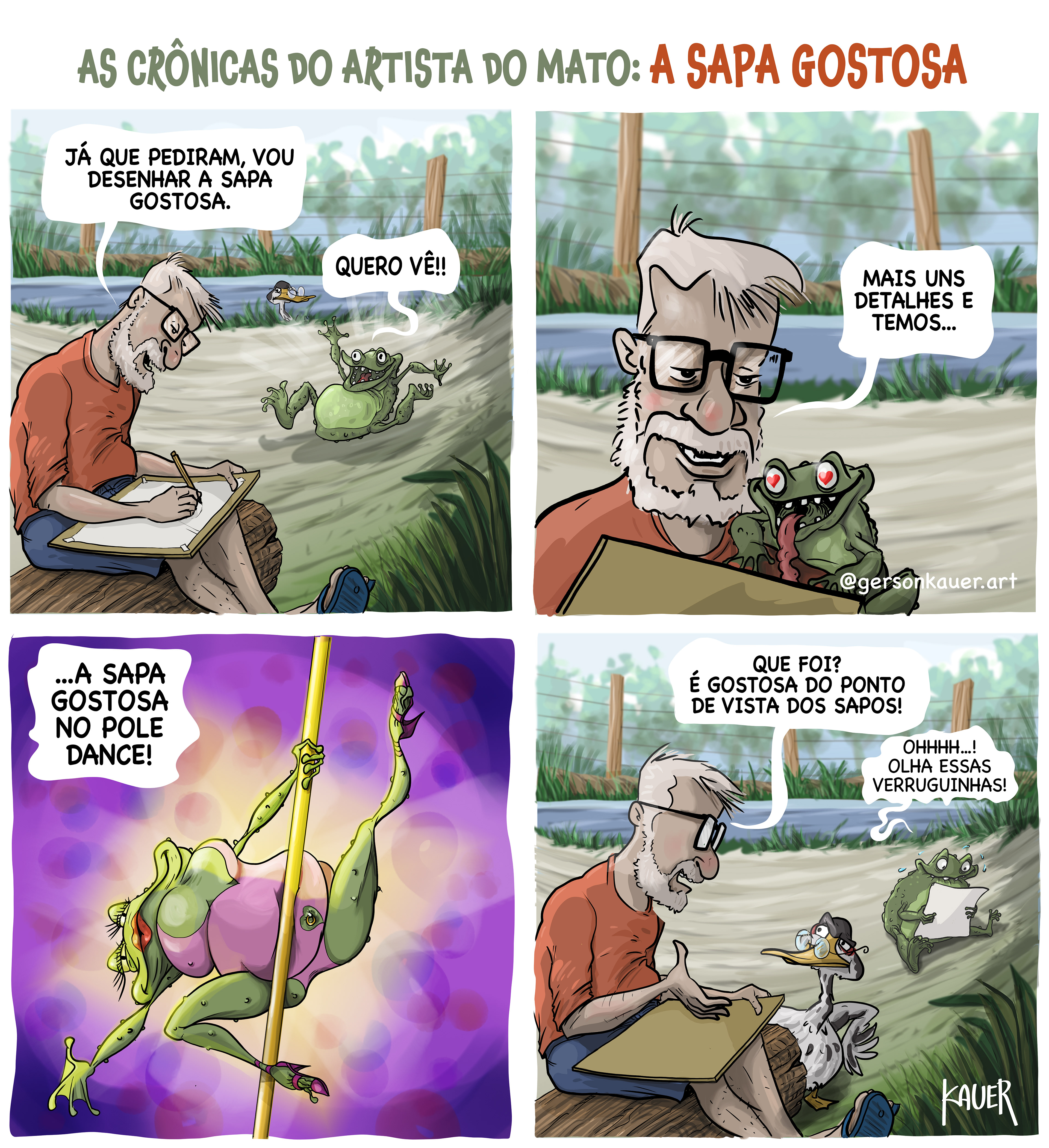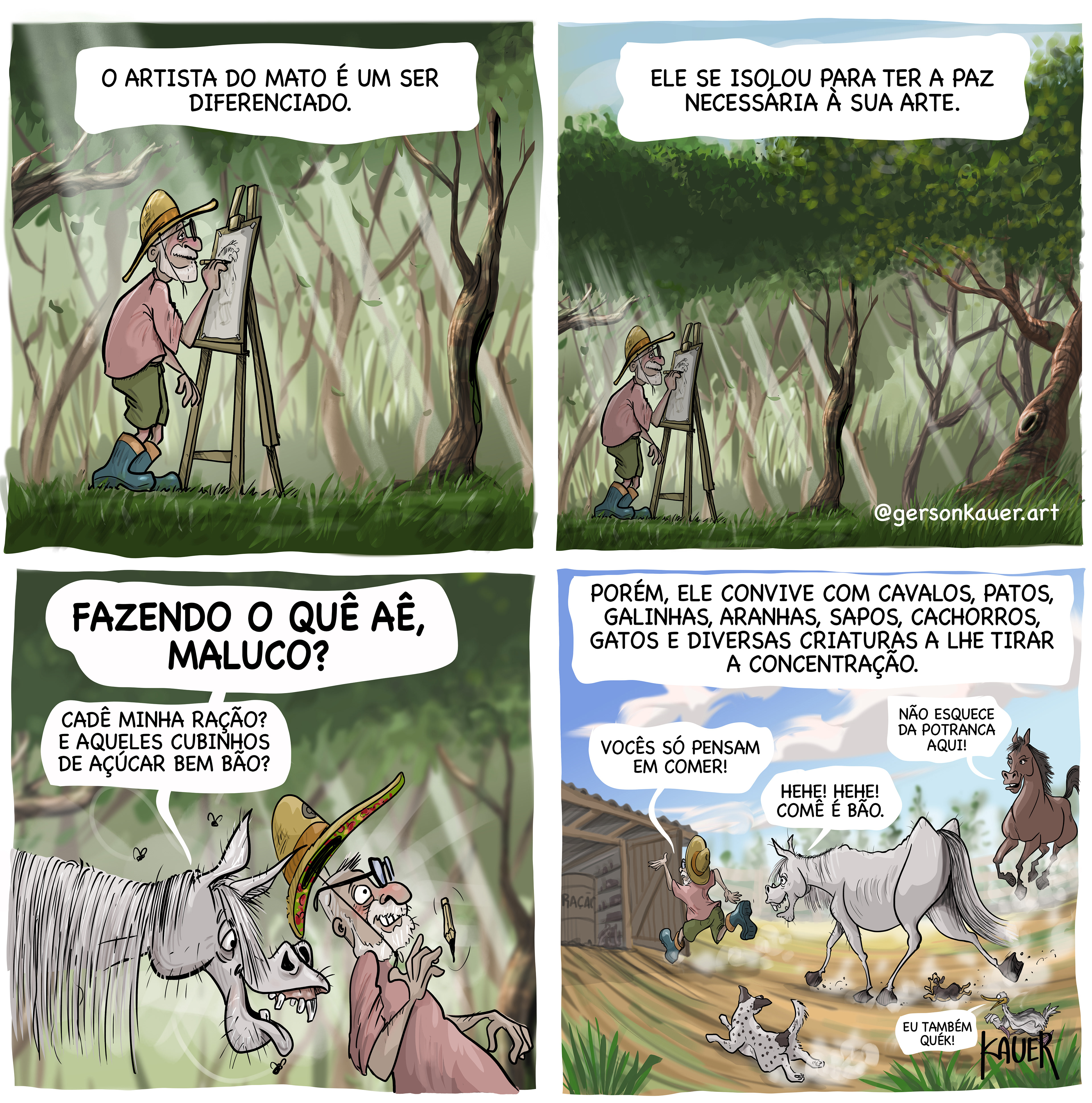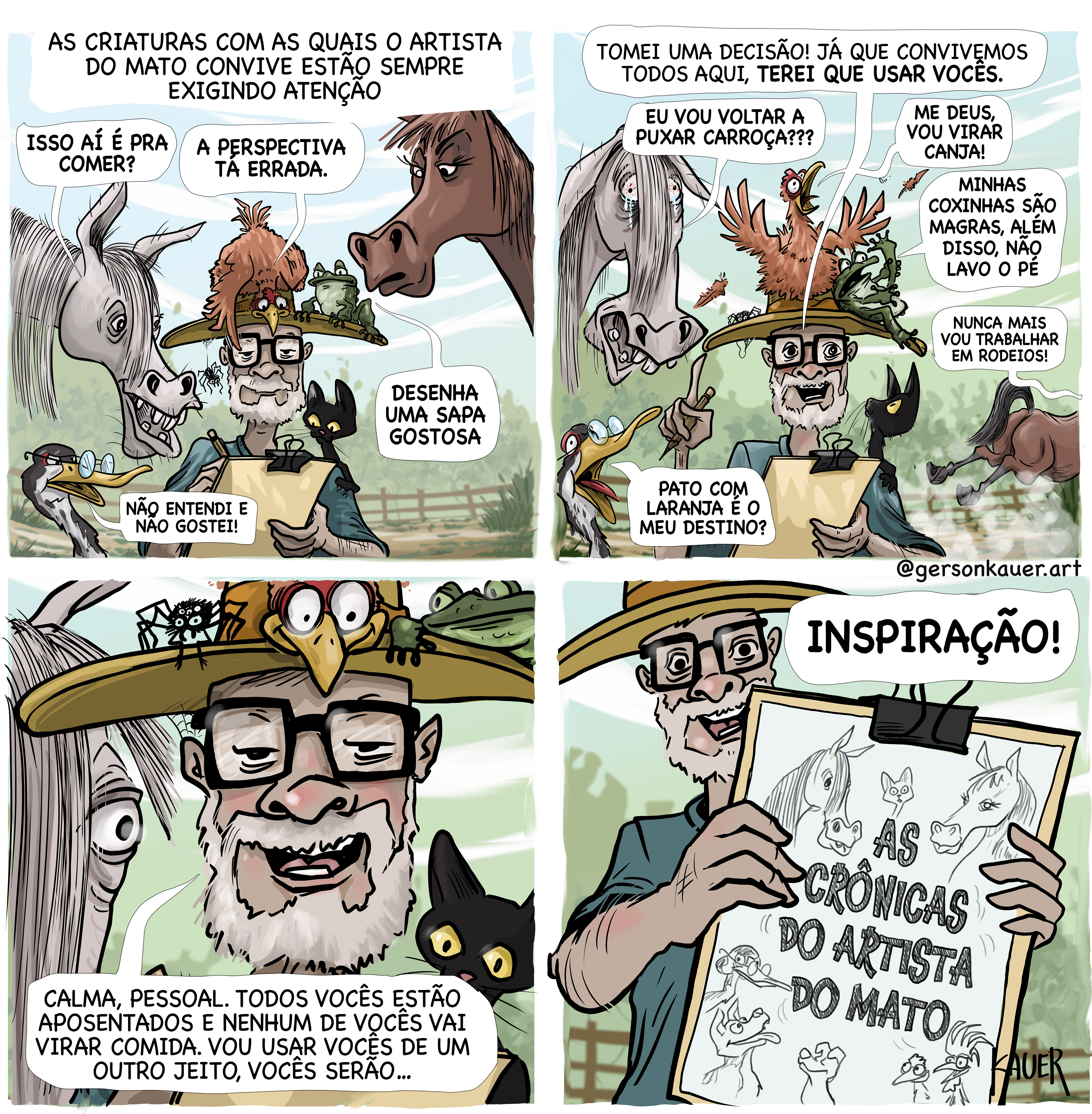 Sou desenhista desde jovem e agora, juntando a habilidade desenvolvida há décadas, a paixão pela causa animal, a vida no campo e o espírito criativo, resolvi dar vida a estas crônicas desenhadas.